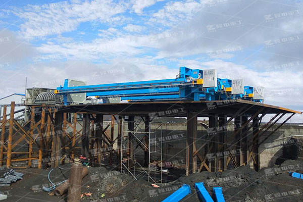 板框壓濾機(jī)是污水處理系統(tǒng)中的針對(duì)污泥處理的設(shè)備,其作用是將污水處理后的淤泥進(jìn)行壓濾,形成大塊濾餅(泥餅),以便排除。由于板框壓緊,淤泥無(wú)法外溢,在螺桿泵和隔膜泵的高壓之下,淤泥中的水分由濾布中滲出,流入回水管,而泥餅則留在了空腔中,之后板框卸壓,濾板拉開,泥餅靠重力落下。