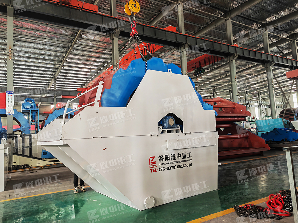 清洗原理:在洗滌槽中加水形成強水流,及時將雜質(zhì)及比重小的異物帶走,并從溢出口洗槽排出,完成清洗作用。干凈的砂石由葉片帶走,后砂石從旋轉(zhuǎn)的葉輪倒入出料槽,完成砂石的清洗作業(yè)。