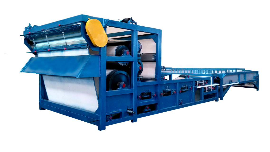 壓濾機是洛陽隆中重工在引進壓濾技術(shù)基礎(chǔ)上研制成功的新機型, 該設(shè)備是通過兩條濾帶纏繞在系列順序排列、大小不等的輥輪上,利用濾帶間的擠壓和剪切作用,來脫除料漿中水分的種壓濾設(shè)備,具有著能連續(xù)作業(yè)、自動化程度高、節(jié)能、使用維護方便等優(yōu)點,是種進行污泥脫水減量化處理的好設(shè)備。
